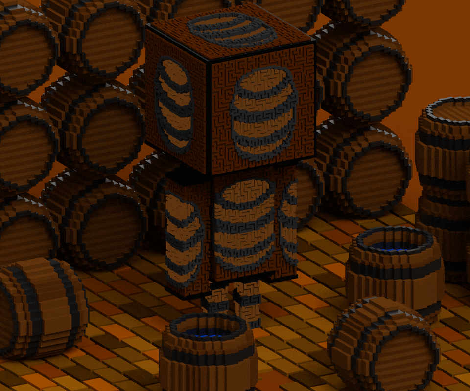 樽をこよなく愛する。あまりに愛するあまり自分自身に樽を刻み込んだ。珍しい樽を求めて世界各地を旅している。He loves barrels. He loves barrels so much that he has carved them into himself. He travels the world in search of rare barrels.